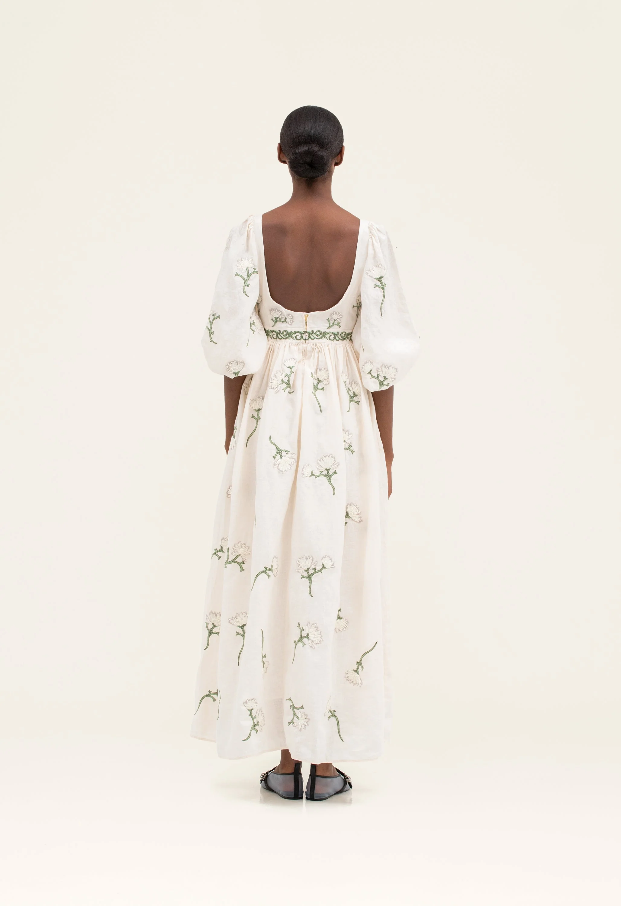 Featuring ultra-feminine balloon sleeves, a lovely floral print, and unique hand-embroidered details, our ´Viviane Soledad´ maxi dress is perfect for midday gatherings and moonlit soirées. This garment has concealed zip fastening along the back.