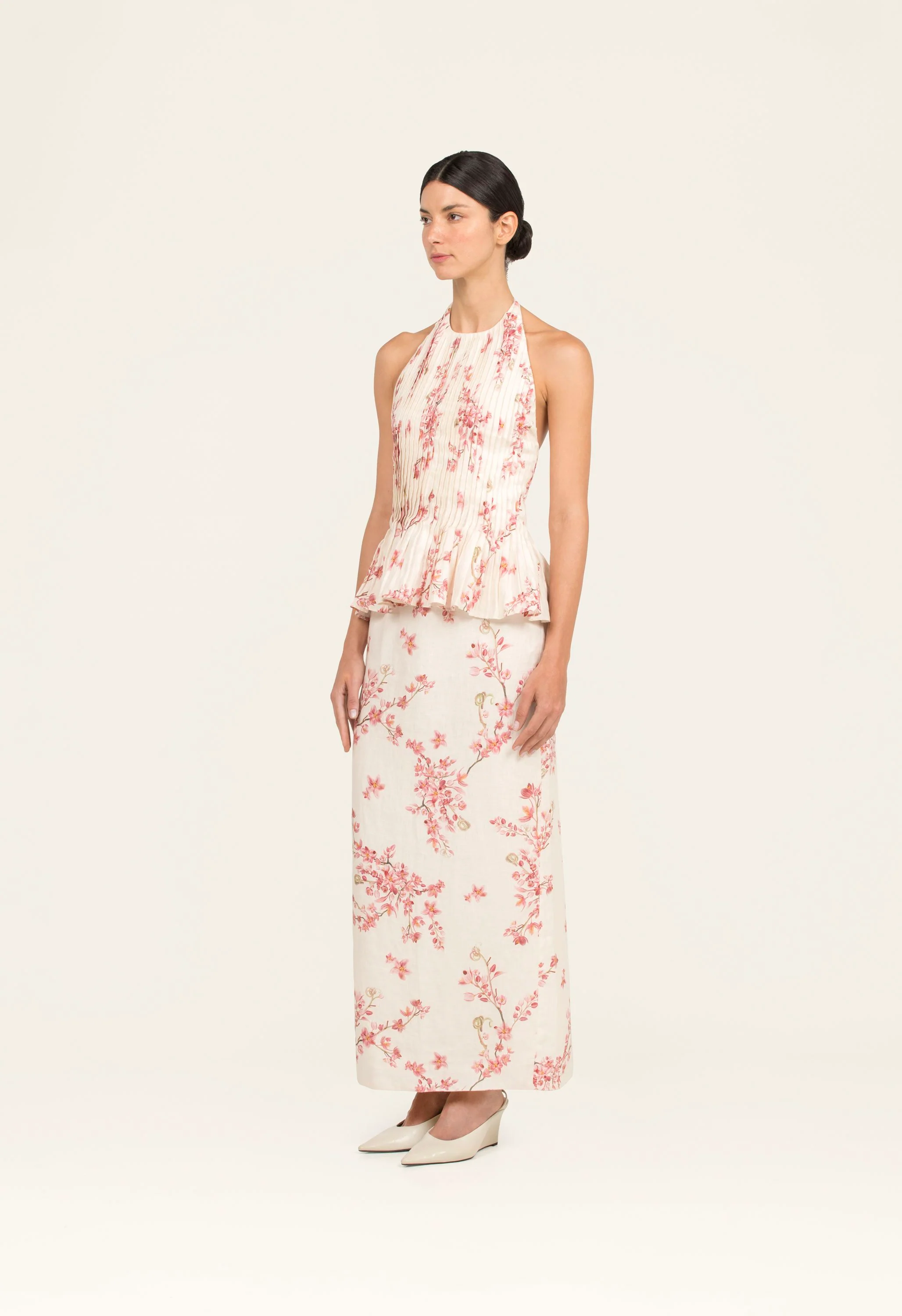 A new addition to our signature pieces, ‘Caña Cauca is cut for a slim fit with neat halter neck and peplum waist. The style is made in a floral printed linen, structured with pleats throughout. Wear with the matching Caña Paraiso skirt.