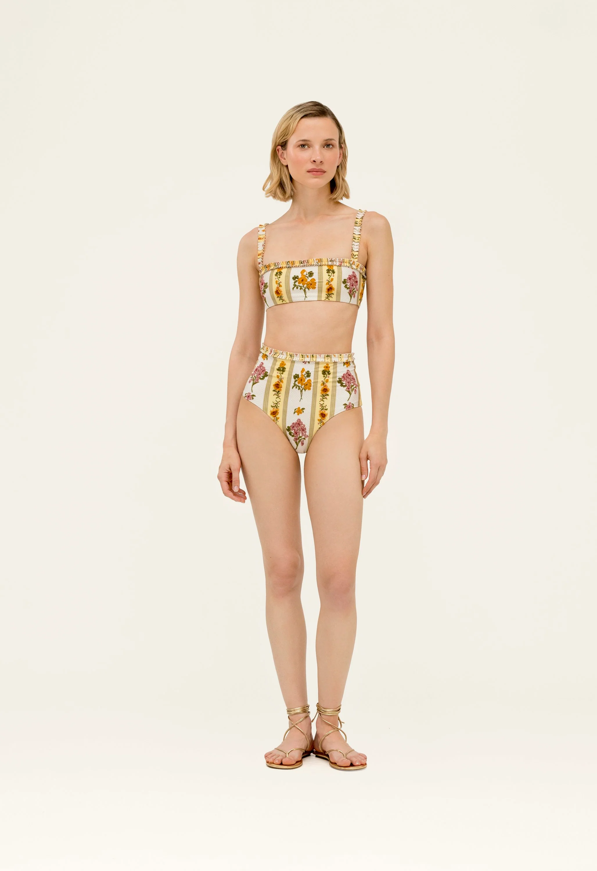 With pretty ruffles adorning the waistline, and delicate embroidering. Our ’Nopal Cordillera’ is a slim-fit bikini bottom that pairs perfectly with our ’Olmo Cordillera’ bikini top. This garment is made using recycled polyester. Our swimwear garments offer up to UPF 50 sun protection.