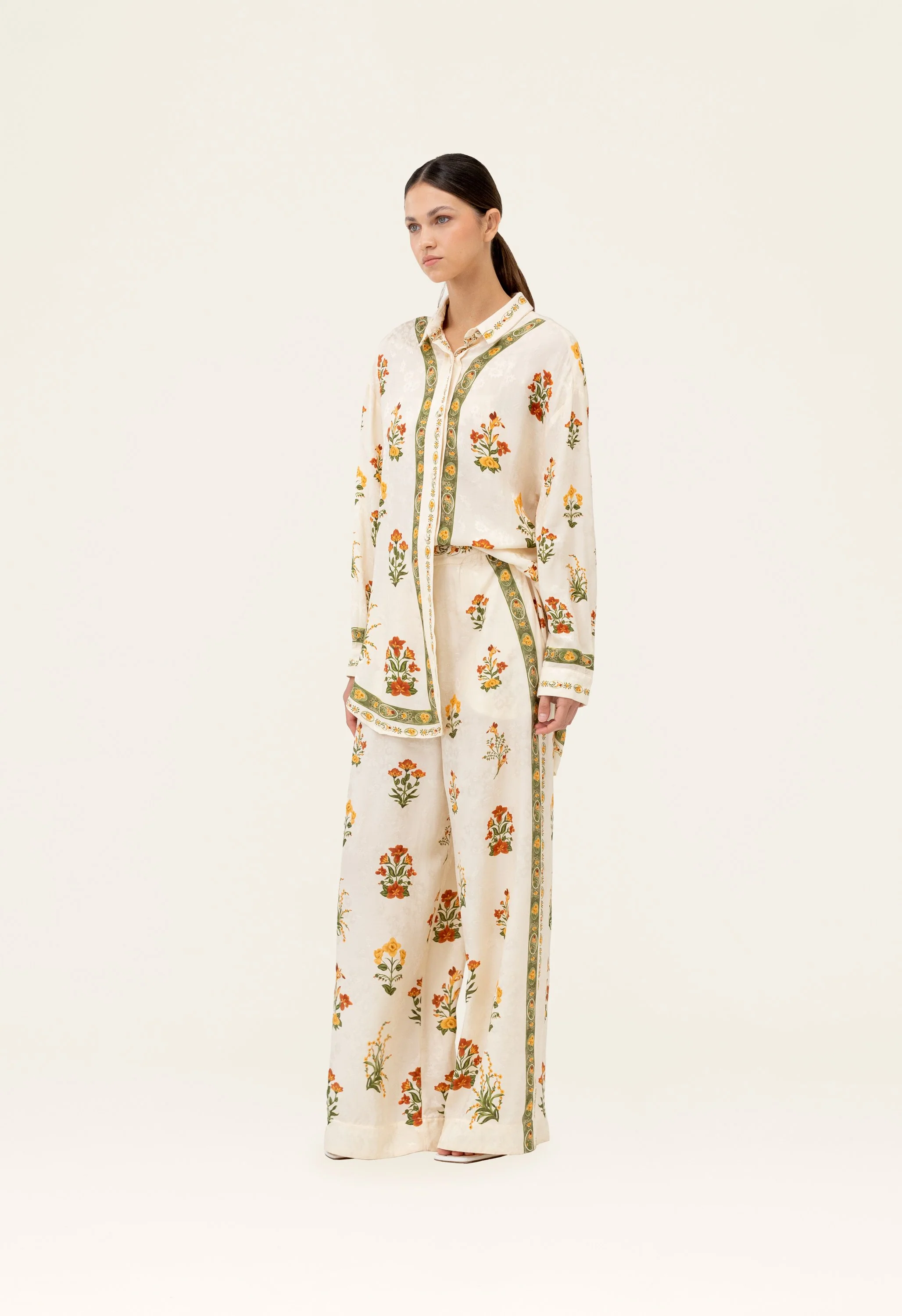 Our ´Cecilia Canna´ button-down shirt is as chic as it is versatile with it’s delicate floral print. Create a flawless look by wearing it with our matching ´Tota Canna´ trousers.