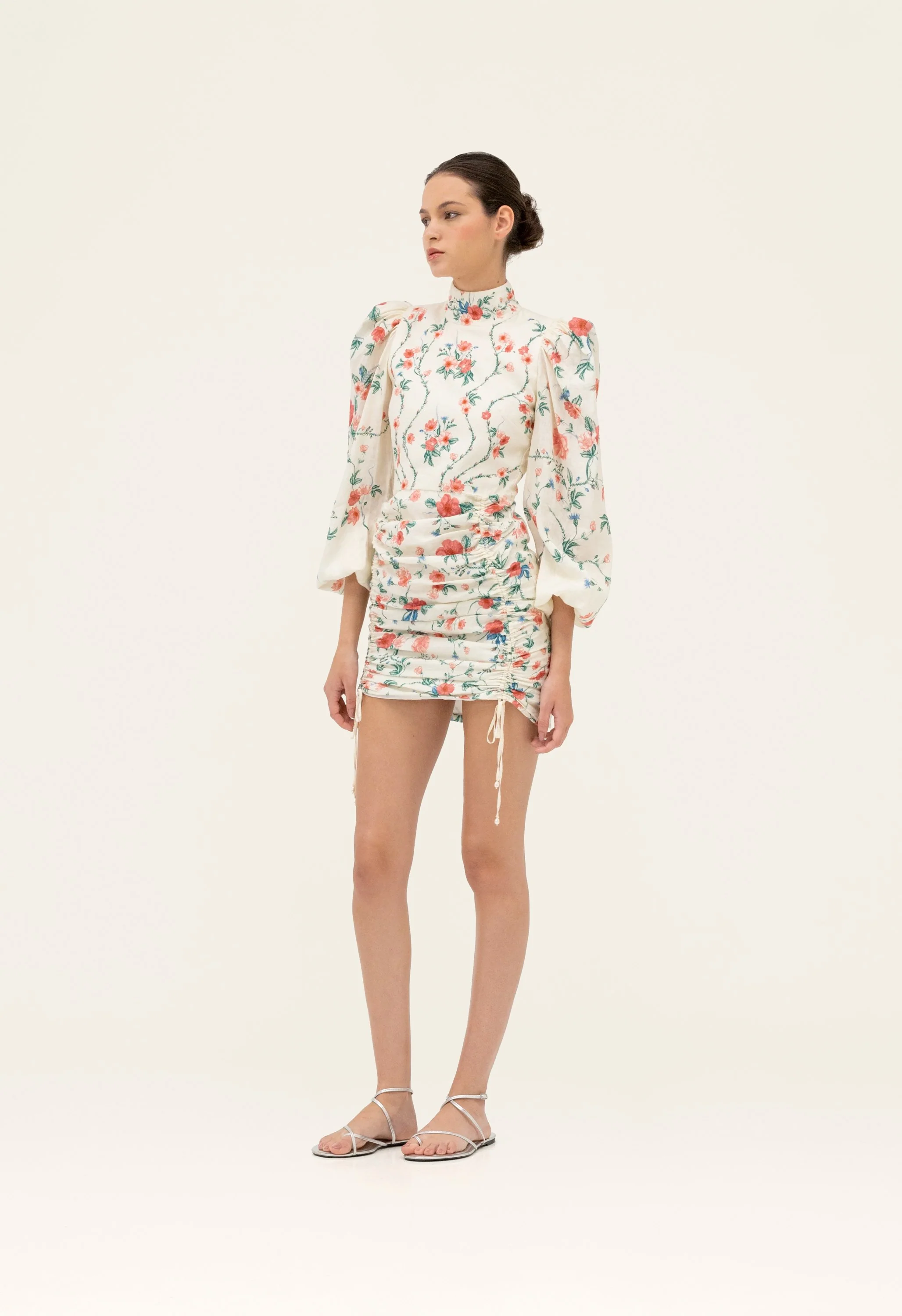 Fall in love with our ´Guaba Mosqueta´ mini dress. Made from breezy linen and breathtaking illustrations, this piece features gorgeous balloon long sleeves, an elegant high neckline, and concealed zip fastening along the back.
